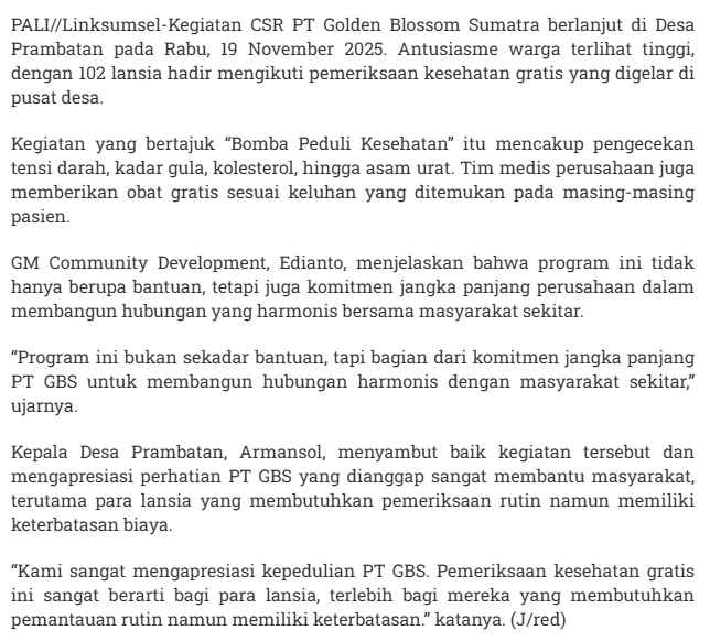 Peduli Kesehatan, Bomba Grup Gelar Pemeriksaan Kesehatan Gratis di Desa Prambatan